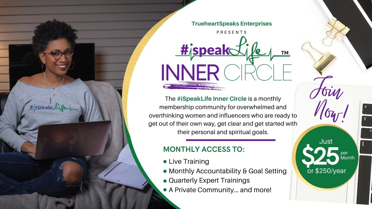 The #iSpeakLife Inner Circle is a membership & mentorship community of faith created and designed to help push, provoke and propel high performing and high capacity Christian women to start taking an active role in the freedom, fulfillment and clarity they desire in life, business & ministry. Plus, as a member of the #iSpeakLife Inner Circle, you get access to several "not available anywhere else" perks!